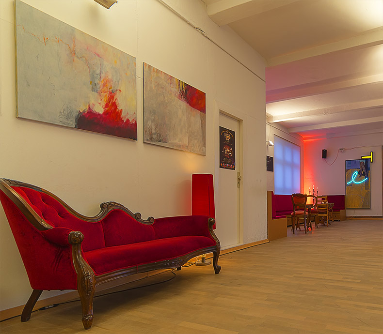 Getränkebestellung, Barbetrieb mit Personal, Vermittlung von Catering-Service und Dj, Grundreinigung. Tagsüber können die Studios für Proben, Körperarbeit o.ä. genutzt werden. Samstagabend sind private Feiern oder Partys aller Art möglich.
